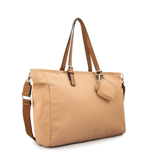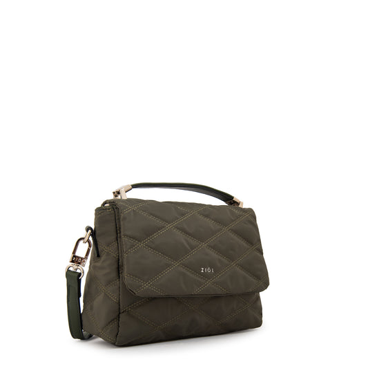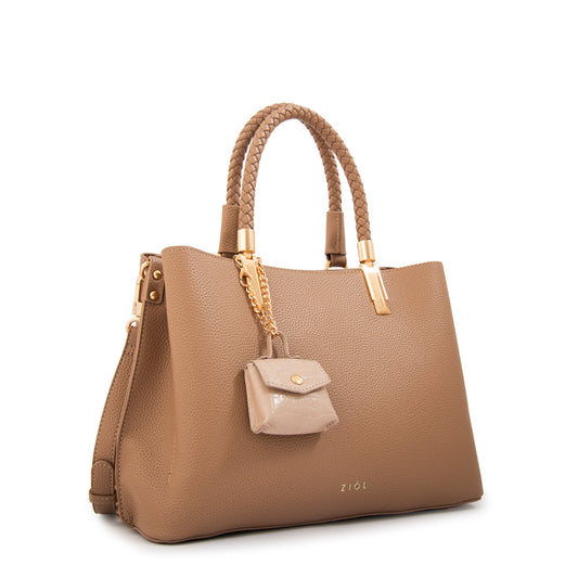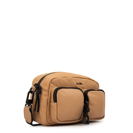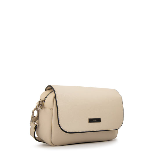 Cartera bandolera con tapa elvira pequeña beige oscuro