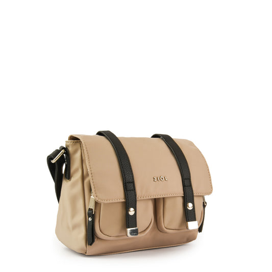 Cartera bandolera con tapa mediana elvas beige oscuro