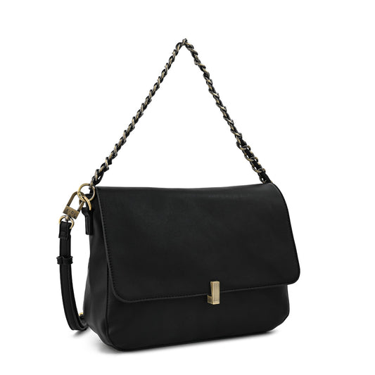 Cartera bandolera con tapa mediana doris negro especial