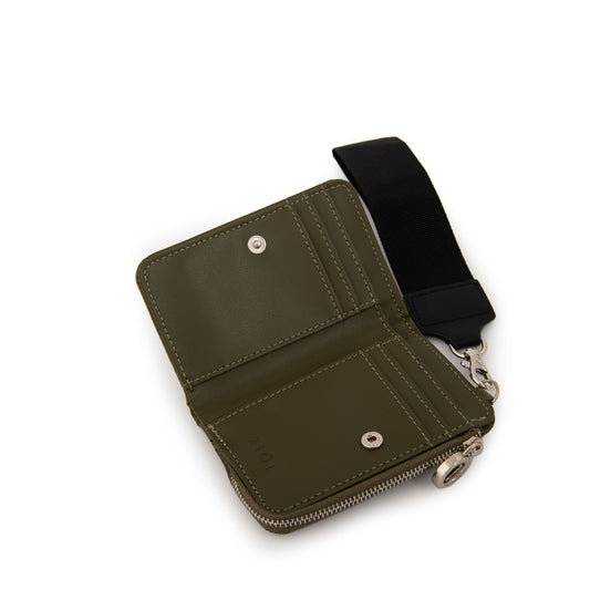 Monedero bolsillo frontal pequeña nacha verde oliva