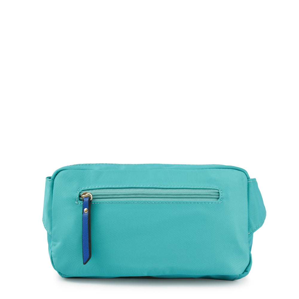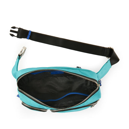 Banano Pequeña Color Turquesa Fabricada En Material 20% Eco Cuero / 80% Nylon Y Con Textura Nylon