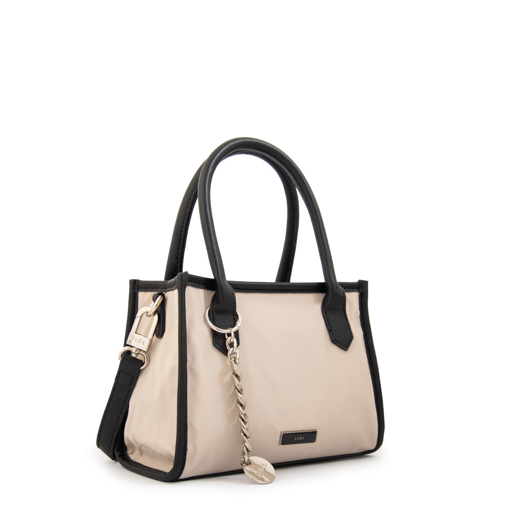 La bandolera Renata de Ziol, en color blanco, es el complemento perfecto para tu outfit. Confeccionada en nylon, cuenta con un compartimiento interno ideal para mantener tus esenciales organizados, cierre seguro, strap ajustable y mini mangos para llevarla en la mano. Su detalle más distintivo es la cadena plateada que cruza el bolso, aportando estilo y personalidad a cada look.