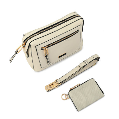 Si buscas un diseño versátil con un color neutro, la bandolera Zia en blanco crudo es la opción ideal. Confeccionada en símil cuero, cuenta con un cierre seguro, tres bolsillos internos y una correa ajustable para que la lleves como más te acomode. Ligera y práctica, es un básico que se adapta a cualquier look.