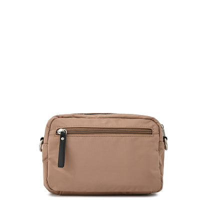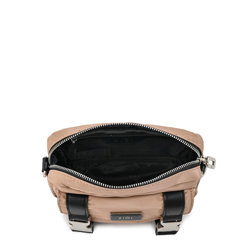 La bandolera Diana en beige es liviana, versátil y fácil de combinar. Confeccionada en nylon duradero, cuenta con un cierre metálico seguro, dos bolsillos internos y una correa ajustable que te permite llevarla como prefieras. Un diseño pensado para acompañarte en cualquier plan.
