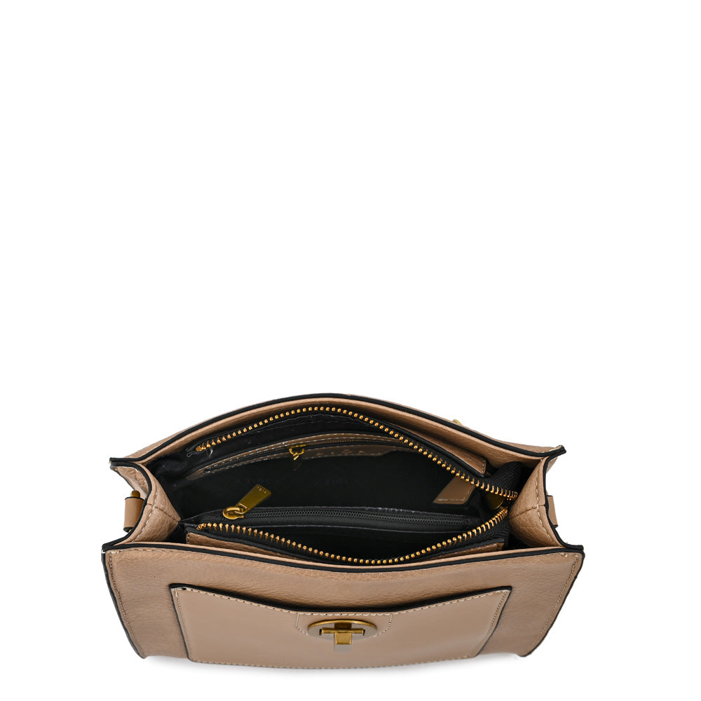 Un básico con estilo. La Nina en beige combina un diseño práctico con un acabado elegante en PU texturizado. Sus dos cierres metálicos aseguran tus cosas, mientras que sus tres bolsillos internos ayudan a mantener todo en su lugar. Incluye un monedero extraíble, ideal para llevar lo más pequeño sin complicaciones. Con su correa ajustable, puedes adaptarla a tu comodidad.