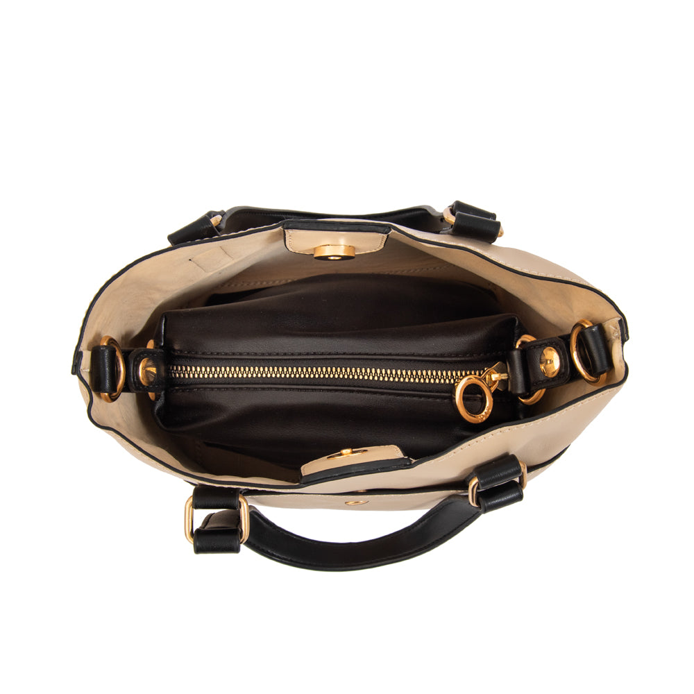 La bandolera Siberia destaca por su estilo práctico y adaptable. Fabricada en PU liso y en un elegante tono en blanco, cuenta con dos mangos que permiten llevarla cómodamente en la mano, además de un strap regulable para usarla al hombro o cruzada. Su interior está organizado con múltiples compartimientos, ideales para mantener todo en orden durante el día. Un diseño funcional que se adapta fácilmente a distintos looks y a cualquier temporada.