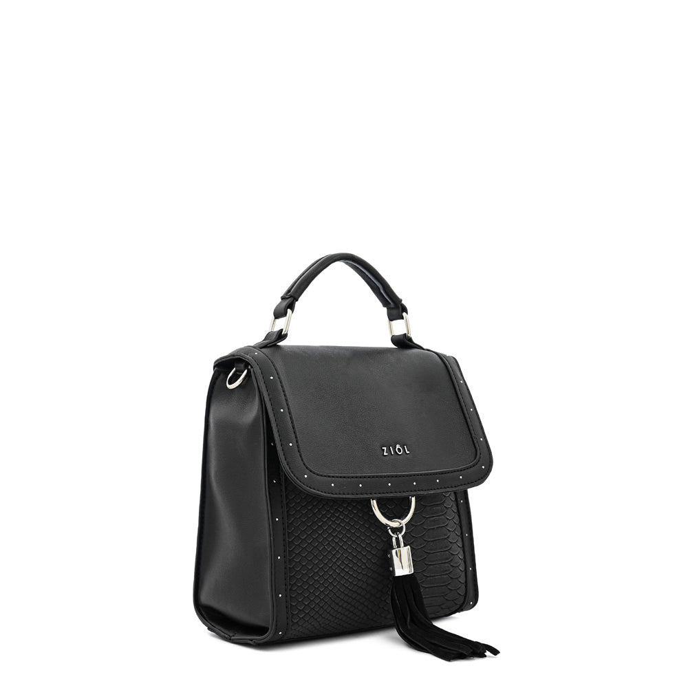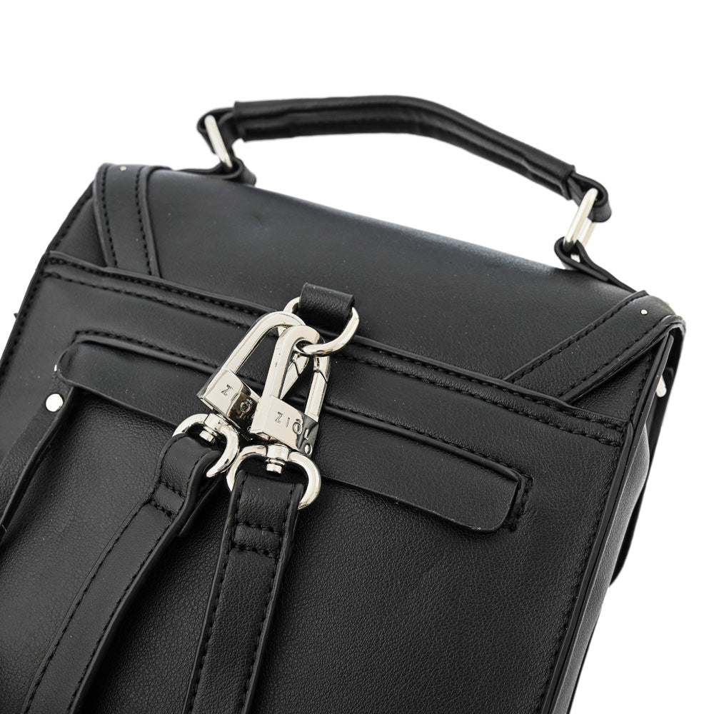 Mochila Con Tapa Textura Pu Mix En Color Negro Especial