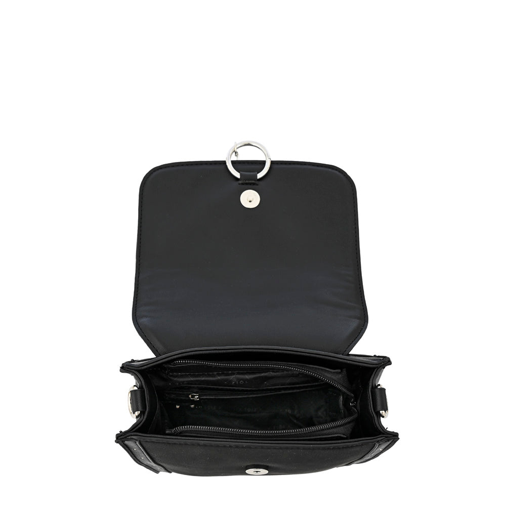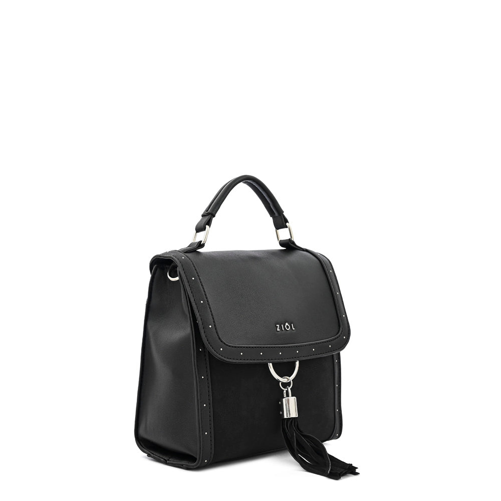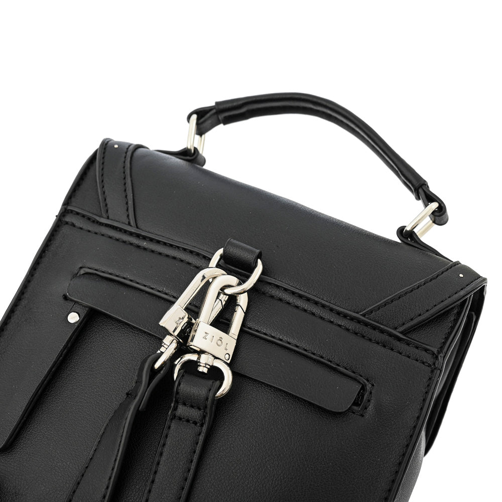 Mochila Con Tapa Textura Pu Mix En Color Negro
