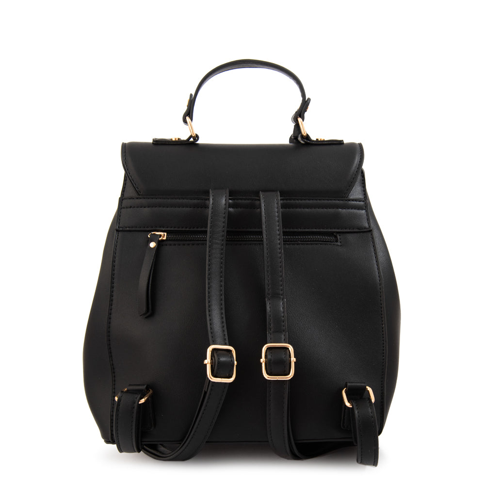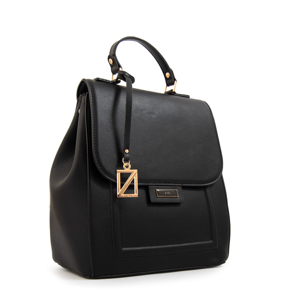 La mochila Ziol Carmina en negro combina funcionalidad y estilo con su tapa exterior que brinda mayor seguridad. Su diseño estructurado en PU suave, cierres metálicos y charm decorativo elevan cualquier look. Ideal para la ciudad, el trabajo o un día activo con actitud.