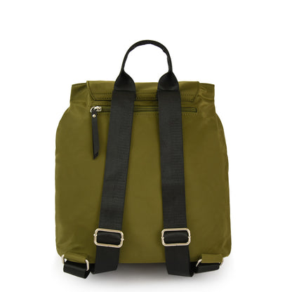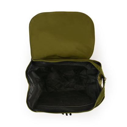 Mochila Con Tapa Mediana Color Verde Oscuro Fabricada En Material Nylon Y Con Textura Nylon