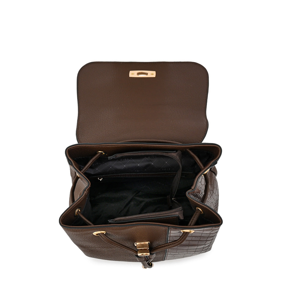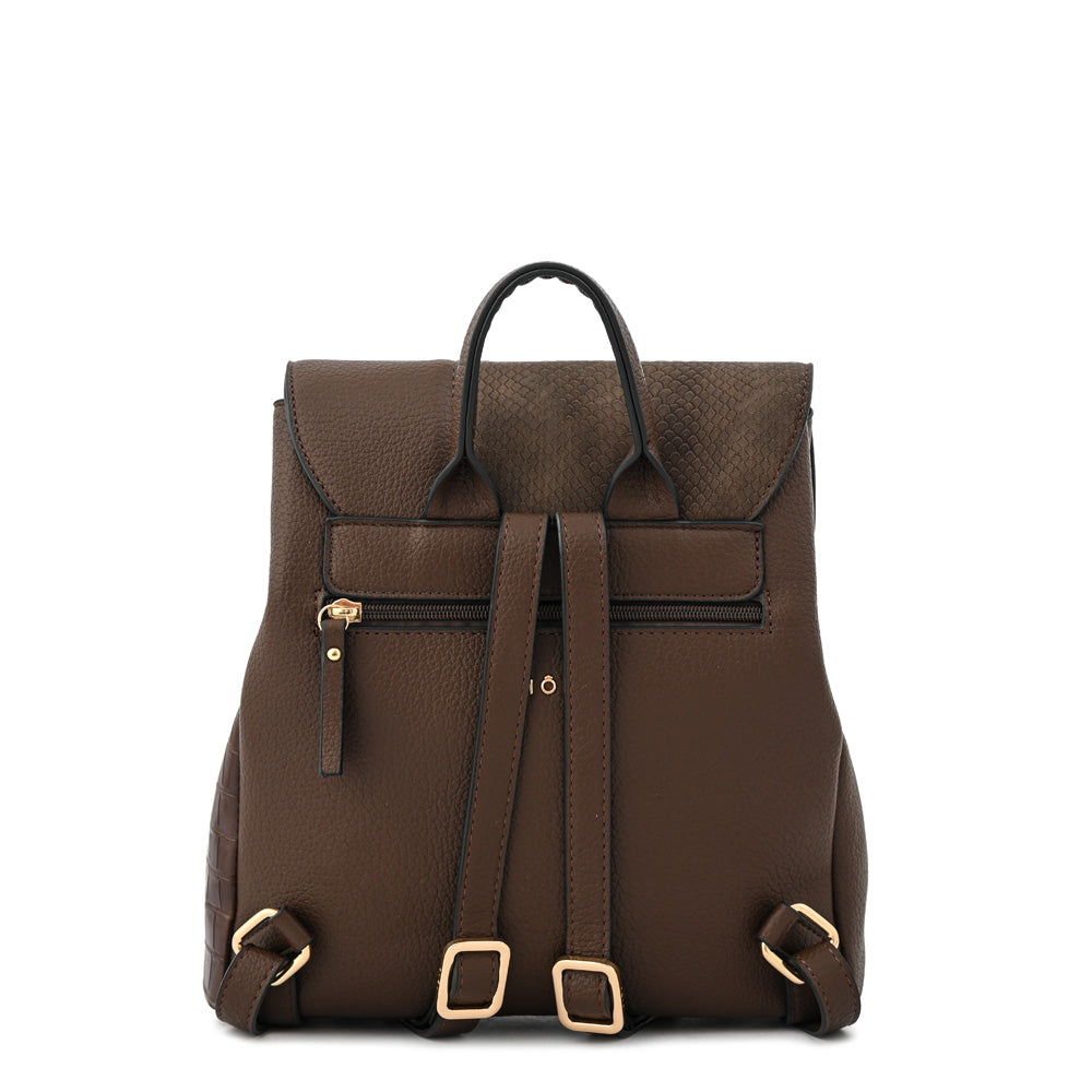 Si buscas comodidad con un toque clásico, la mochila Conce en café oscuro es para ti. Hecha en símil cuero, cuenta con una tapa con broche metálico y tres bolsillos internos que facilitan la organización. Su diseño práctico y las correas ajustables la hacen ideal para quienes necesitan moverse con libertad sin perder el estilo.
